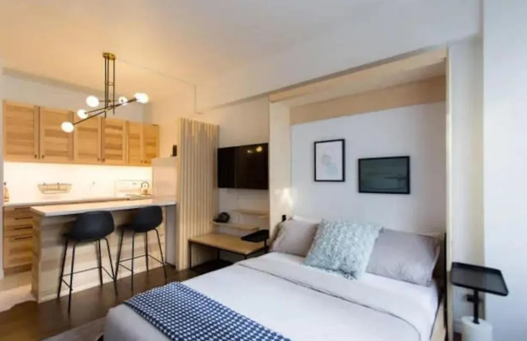 בדירה זו ישנו מטבח עם מקרר וטוסטר. שדה תעופה מונטריאול, קוויבק ממוקם במרחק של 20 ק"מ מהנכס, בזמן שתחנת מטרו תחנת הרכבת ה פלאס דז ארט נמצאת במרחק של 5 דקות בלבד ברגל.